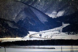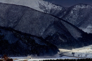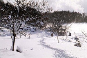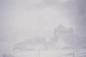 ■1996-2-3(土) 道半ば、撮影を終えて引き返します。さっきまでの吹雪が嘘のよう