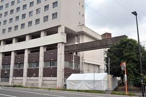 ■建物の西側 (南西から撮影) [手柄山側]。ホームに見学者がいます