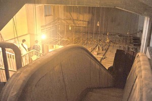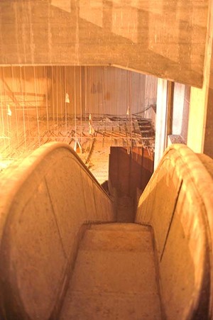 ■無造作に(?)板が敷いてあるような位置が3階の床面に相当します。見方を変えれば2階の天井を上から見ている形になりますが、これらは休止・廃止後に作られたものと思います。階段・エスカレーター部の2〜4階は元々は吹き抜け構造だったと、何かに記述があった記憶があります