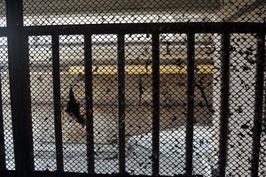 ■階段横のガラス越しに見たモノレール軌道。手前の網目にピントが合ってしまっていますが、目を凝らしてご覧ください。モノレールが通るときは迫力満点だったでしょうね