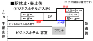 しかし駅が休廃されると、住民が2階の自由通路を通る需要が無くなります。(2階に何かのテナントが入居していたとしたら、そこに買い物にでも行くときに使う程度?)