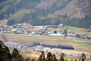 天気も持ち直して、黒煙・白煙 (ついでに無煙も) のC58と桜並木をGET。