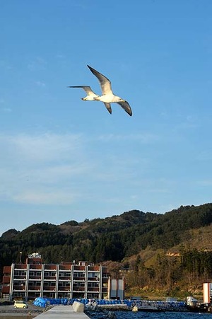 もともと宝来館は、津波時の指定避難場所になっていたそうで、たしかに海岸からは一段二段ほど高い場所に建っています。