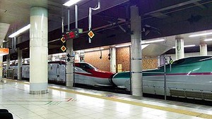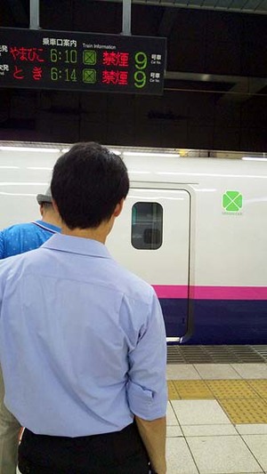 まずは上野駅にて恒例の撮影会と思いきや、いつもはE5・E6系「はやぶさ・こまち」編成が停まっている19番線にE4系(かな?)が鎮座。E5・E6系は21番線に居ました。夏休みゆえ、色々と変更があるんでしょう。