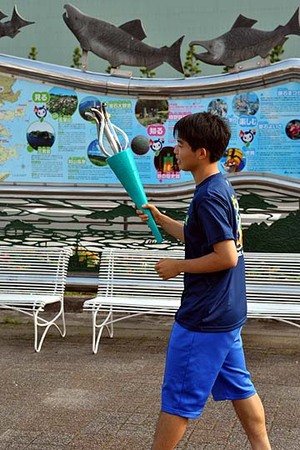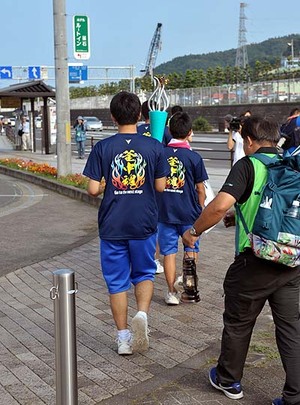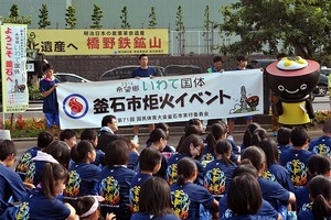 釜石の駅前で、いわて国体の炬火イベントをやっていました。