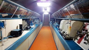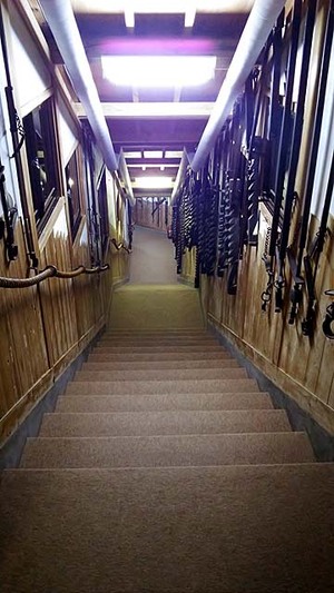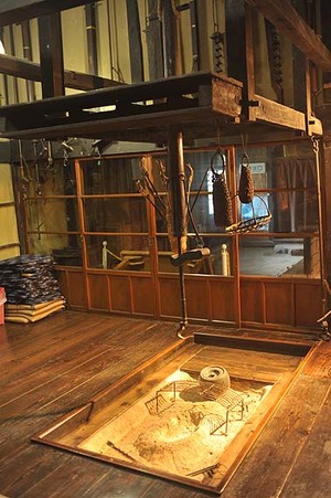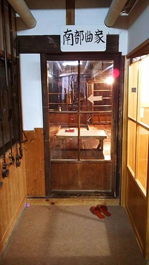 途中、大口径の水道管を使った渡り廊下や、南部鉄器をこれでもかとぶら下げてある階段を降りていきます。