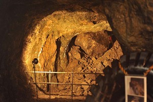 仙人秘水の源泉・採掘地からトロッコで戻ること10分、鉄鉱石の採掘現場・跡地です。これぞ鉱山の真髄。
