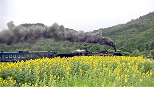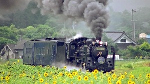 ひまわり畑 C58239「SL銀河」8621列車 2017.8.12 [13:53] JR釜石線 平倉→足ヶ瀬 (岩手県遠野市上郷町)