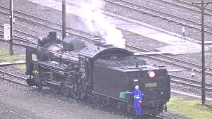 「SL銀河」到着後のC58239切り離し〜入庫作業は非常に手際よく進むため、こちらもスピーディーに行動しないと、あれよあれよと機関車の転向まで終わってしまうのですね。