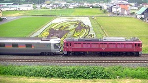 ■2018-6-17(日) 16:19 八幡田んぼアート (花巻空港-石鳥谷) EF8181 カシオペア 【クリックで動画へ】