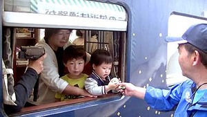 鹿踊の皆さん、駅員さん、ギャラリー&一般のお客さんがみな手を振って見送ってくれます。