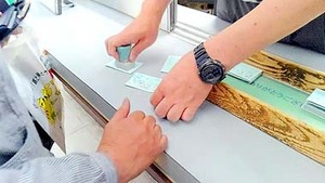 乗車記念のスタンプを捺してもらい、切符をGET。