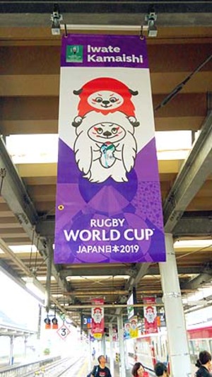 ■釜石復興 撓まず屈せず 旗を振っているのはホテル フォルクローロ 三陸釜石の方らしい
