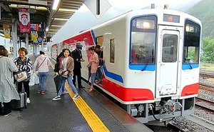 その旧山田線区間は、今年3月に復旧の上で三陸鉄道に編入され、久慈-盛間163kmが1本に繋がりました。全線の直通列車もあります。