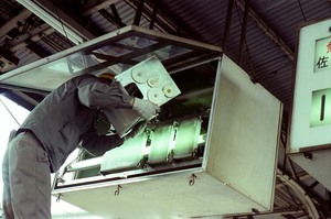 新しい幕に交換・・・ではなく、それまでの文字を雑巾+シンナーで消して、ガリ版みたいな板を載せてインクを挽いて、ヘア・ドライヤーで乾かす、といった人海戦術です。