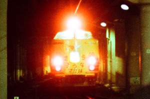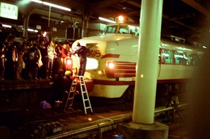 上野駅の高架ホームから発車する列車は外側線を走るので、鶯谷では京浜東北南行のすぐ隣の線路ですから、ホームの明かりで撮れるだろうと (と、今書いてますが、たぶん当時はそこまで考えてないでしょうね)