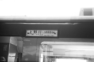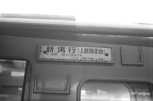 急行「佐渡」です。「よねやま」の折り返しでしょうか。165系。上野-新潟間の列車に「上越線経由」と補足するのは現代ではヤボな感もありますが、上越線は上野-新潟を結ぶルートとしては最も新しく、それ以前のメインルートだった磐越西線や信越本線(長野・直江津)経由と敢えて区別していた名残と思います