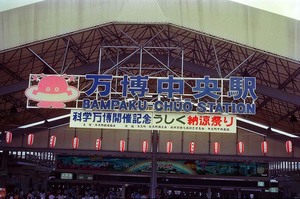 ■1985-8-11(日) 万博中央駅。時期的にみて、駅前で盆踊りでもやったんでしょう