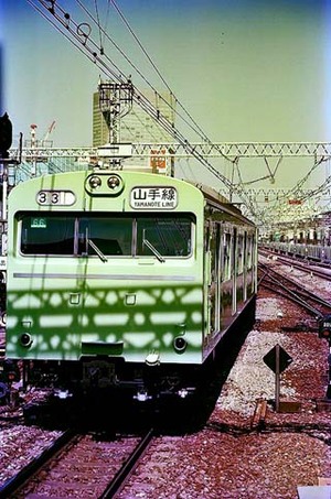 103系 山手 影が・・・今回の撮影場所の選定にあたっては、とにかく「瀬戸」のヘッドマークがハッキリ見えること。そして普段あり得ない時間帯に東京を走っているのが判ること。ということで田町に決めました。ここなら機関車のヘッドマークだけでなく、東京までの送り回送の時に客車側のテールマークも撮影できます。田町なんぞお手軽撮影場所の代表格と言えますが、一応それなりに考えた末の結論です。