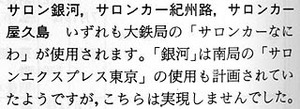 その後に発売された鉄道ダイヤ情報1986年夏号で「なにわ」であることが判明しましたが、付記されていた記事には「サロンエクスプレス東京の使用も計画されていた」とあります。