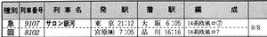 今回の上京は、1日限りの臨時急行「サロン銀河」の運転に伴うもので、ダイヤは 9107列車、東京21:12→大阪6:05 という片道1本のみの営業運転です。