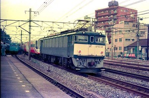 1987年5月26日(火)、鶯谷での EF6249 + スーパーエクスプレスレインボー の推回です。