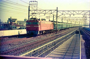 1987年6月8日(月)、学校帰りの亀有で撮影した EF8197 + 14系座席車x12連 です。