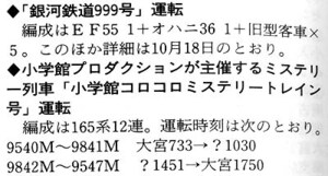 ■鉄道ダイヤ情報1987年10月号「秋の集約臨時列車運転予定表」より (クリックで拡大)