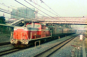 1987年11月5日(木)、学校帰りに北小金で撮影した DD51898 + 白樺 (北長野運転所 12系 お座敷客車) です。
