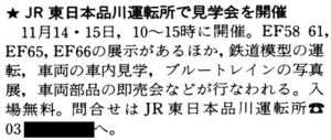 1987年11月15日(日)、品川運転所の一般公開です。