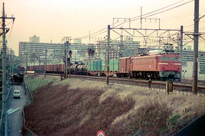 1988年2月9日(火)、江戸川土手・東京側で撮影した EF8114 の貨物列車です。