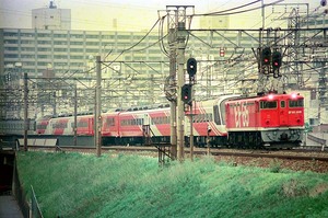 1988年5月7日(土)〜8日(日)、常磐線→成田線→総武線を周回する EF651019 スーパーエクスプレスレインボー です。