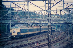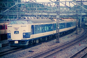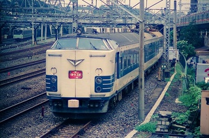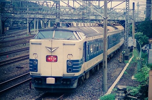 ■1988-8-19(金) 4M (青森21:18→上野6:40 #常磐線経由) 特急「ゆうづる4号」 583系。2号と4号は4分差で続行運転でしたが、その僅かな間にも「はくつる」が割り込んでくるのだから撮る方も忙しい。京成電車が写っている唯一のカットかな