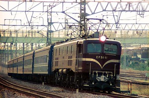 1988年10月4日(火)、東海道貨物線を上るEF5861牽引の81系ミト座「ふれあい」です。