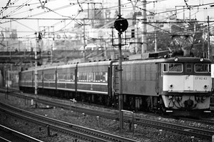 EF6243 は壮大なピンボケ。また、せっかくの EF8195 をなぜに白黒で撮っているのか。もしかして牽引機が EF8195 だとは知らなかった?