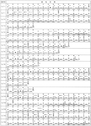 ■鉄道ダイヤ情報1988年11月号「ORIENT EXPRESS 運転計画表」より(クリックで拡大)