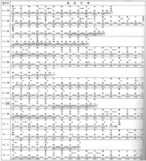 ■鉄道ダイヤ情報1988年12月号「ORIENT EXPRESS 運転計画表」より(クリックで拡大)