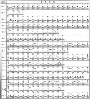 ■鉄道ダイヤ情報1988年12月号「ORIENT EXPRESS 運転計画表」より(クリックで拡大)