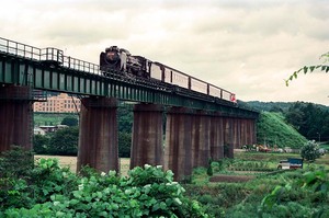 ■1989-8-5(土) 金子-東飯能 (入間川橋梁) 「八王子駅開業100周年記念号」の試運転(下り) D51498+旧客x4+DE101099