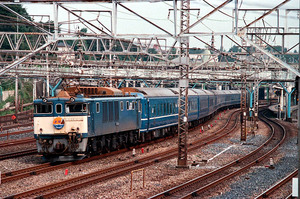 ■1989-8-11(金) 鶯谷-日暮里 回1002列車 特急「あけぼの2号」(上野6:29着) の推回 EF651018
