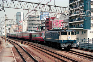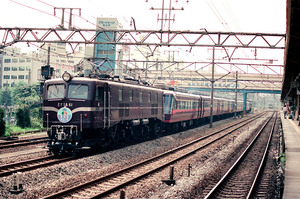 ■1989-8-11(金) 目黒-恵比寿 (長者丸踏切) 回9877列車 (品川7:49→大崎7:57-8:33→新宿8:50) 「横浜博サロン号」の回送 EF5861+サロンエクスプレス東京+EF651105