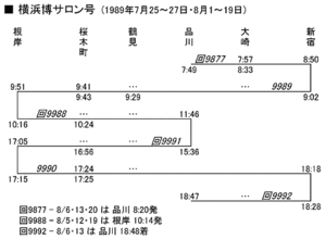 ■鉄道ダイヤ情報1989年8月号・9月号より 「横浜博サロン号」 ダイヤ