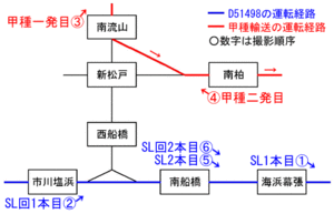 ■1989-8-20(日) 南船橋 9736列車 「SLコニカ号」 D51498
