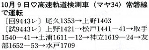 1989年10月9日(月)、学校帰りに撮影した、常磐線を走る高速軌道検測車マヤ34、通称“マヤ検”です。