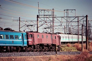 ■1990-1-7(日) 金町-松戸 (下り列車の後追い) EF5889 + 14系座席車