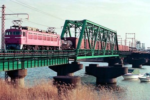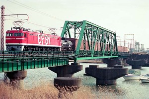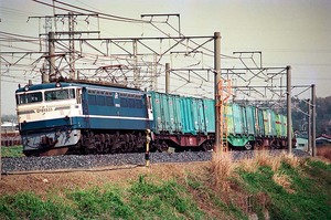 1990年3月、新金線で貨物の先頭に立つEF8195です。
