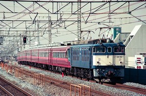 サロンは甲府発で、国鉄時代なら八王子か新宿で機関車交換し、この区間ではDD51の牽引となるパターンです。しかしこの頃から千葉地区でもELが幅を利かせるようになり、EF65はもちろんEF64なども平気で秋葉原の鉄橋を越えて、総武線に入ってくるようになりました。