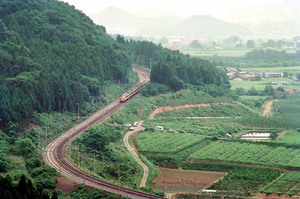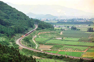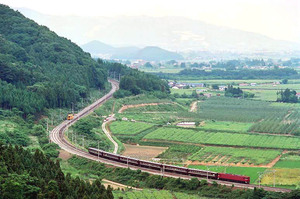 ■1990-6-20(水) 庭坂-赤岩 485系「つばさ」9連。上野発着便かと思いましたが、調べてみると時間が合わないので福島便のようです