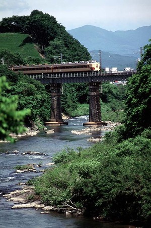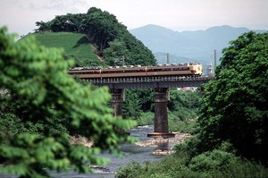 仕方がないので、鉄道雑誌で見た記憶のある場所に移動。河原に下りて撮ろうとしたものの、どうもうまく下りられず、中途半端な写真になってまいました。