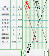 DL牽引の 9836列車と、823Dのスジが常陸津田あたりでバッテンしています。が、常陸津田は棒線駅なので、これはあり得ません。